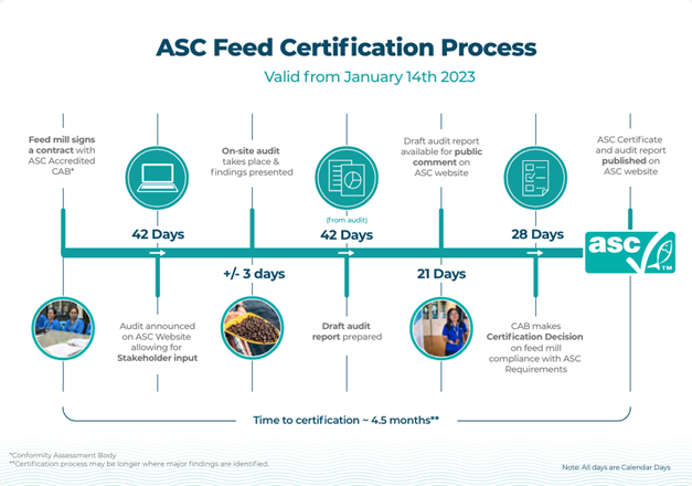 - The ASC Feed Standard became effective in January 2023. ASC-certified farms have until October 2025 to transition to ASC-compliant feed produced under the ASC Feed Standard to continue meeting the ASC Farm Standards.