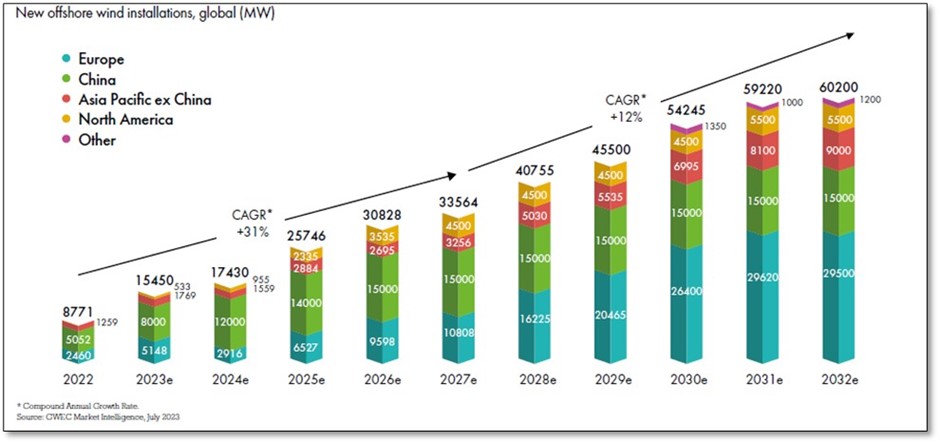 There's a strong global growth in offshore wind which is expected to continue over the coming 20-30 years. We’re at the beginning of this growth curve (see chart below), so there’s a lot more to come.